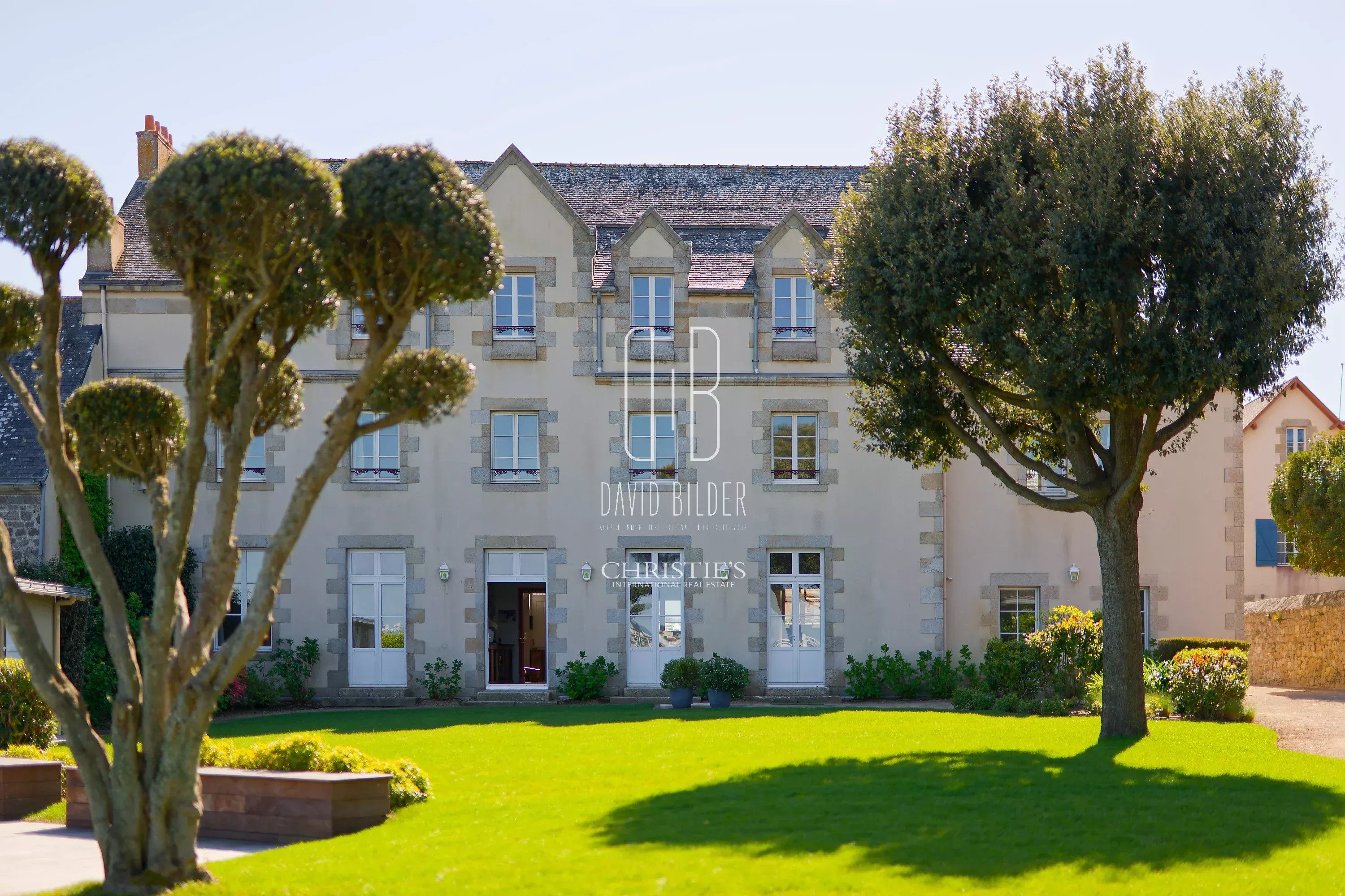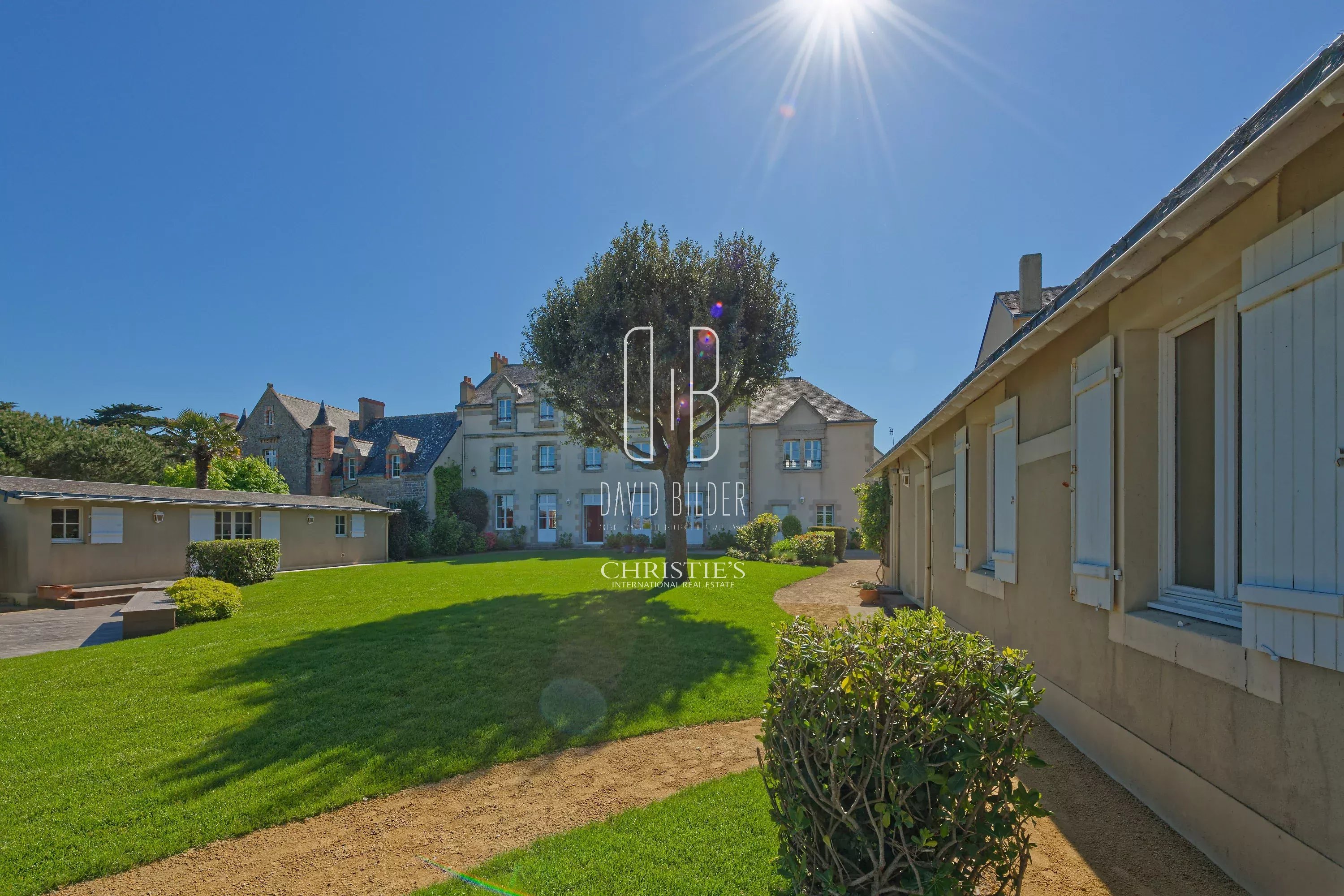 Behind a stone perimeter wall, on the tip of Penchâteau, an 1880 mansion turns its back on the world and the facade to the Atlantic. A door in the wall opens directly to the beach.