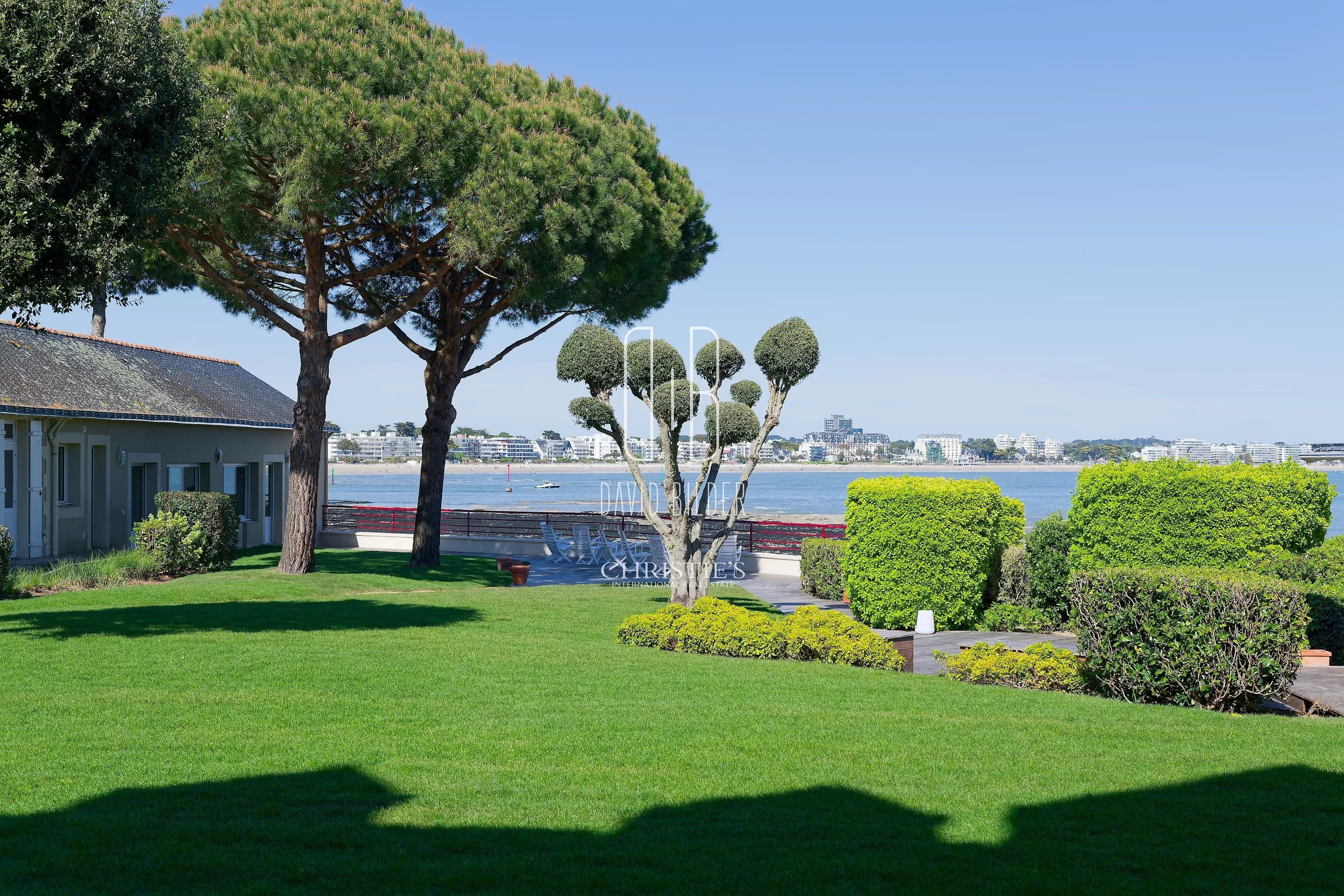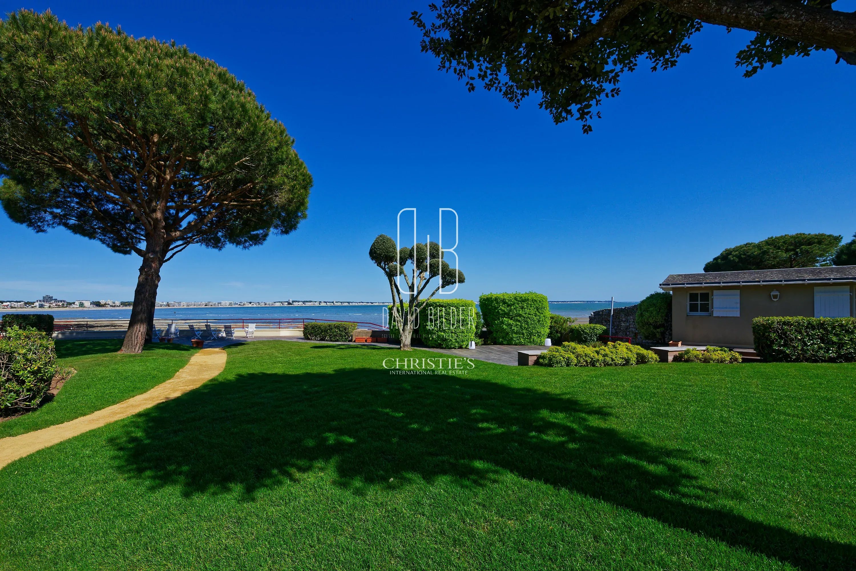 The property is organised around a fully enclosed park of 1,775 m², planted with large pines and maritime species. In the perimeter wall, a pedestrian door: on the other side, the beach...