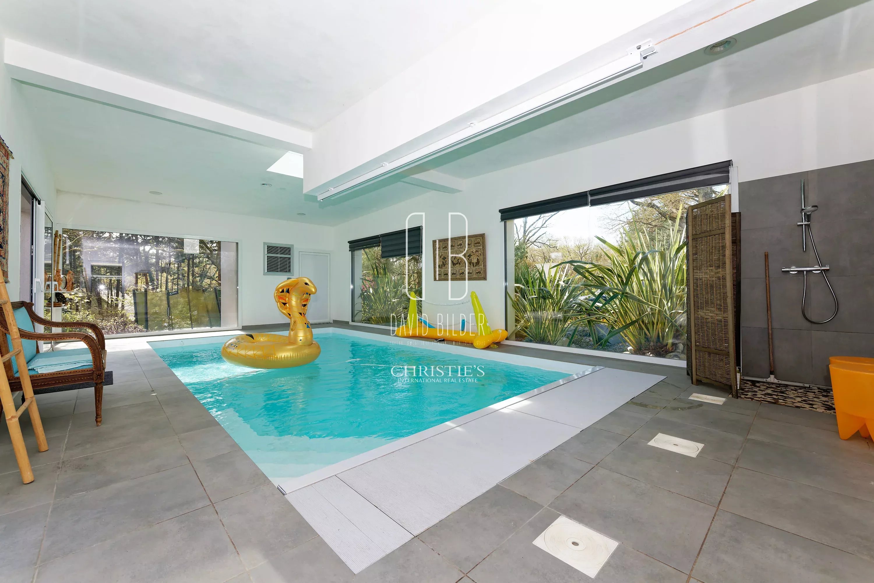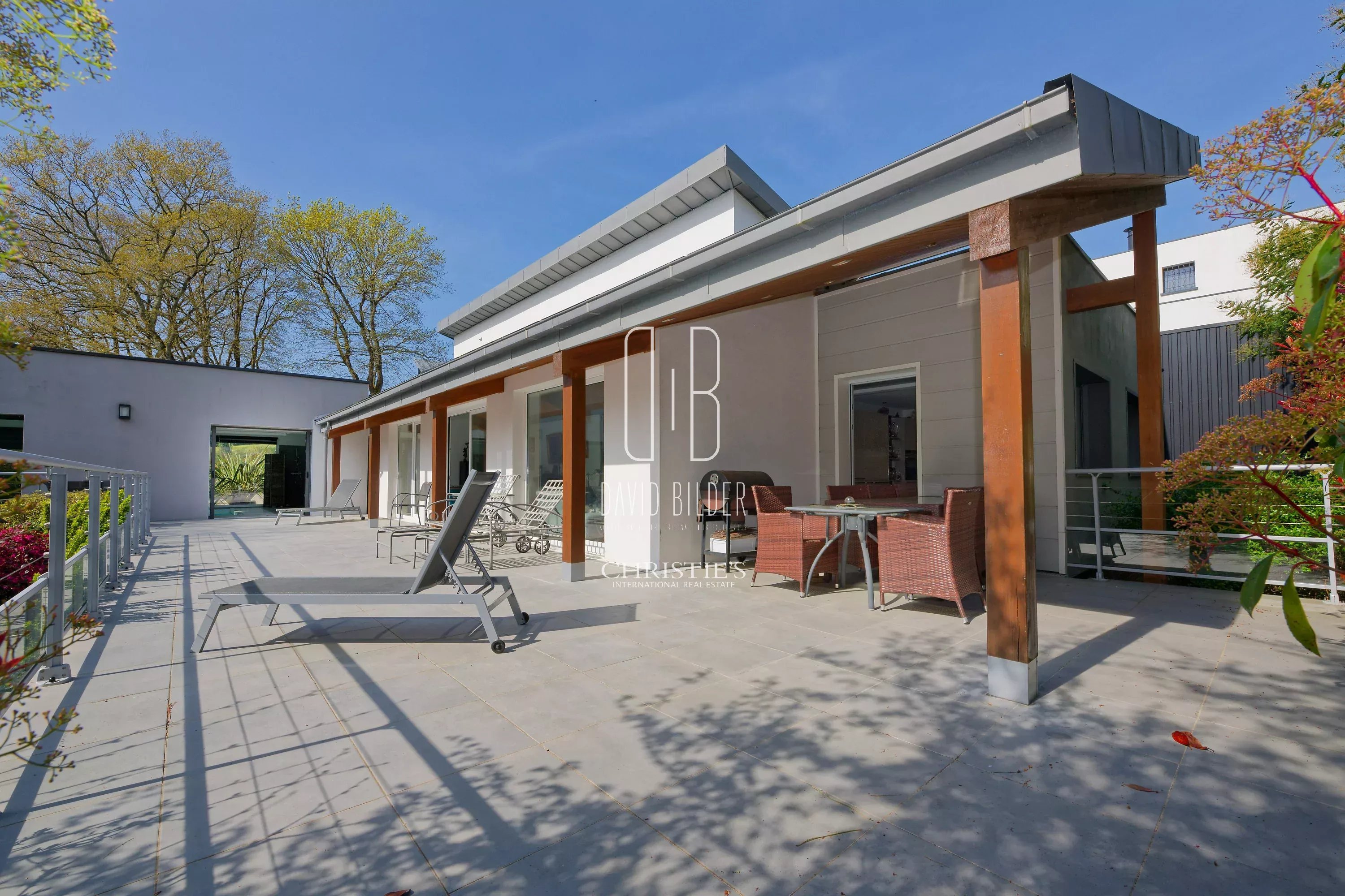 In the preserved setting of a private domain adjacent to the International Golf of La Baule, the villa unfolds its volumes with a singular elegance. Contemporary architecture with assertive lines, large terrace of 100 m² facing south, indoor pool bathed in light, landscaped garden planted with generous species - everything here invites you to live differently.