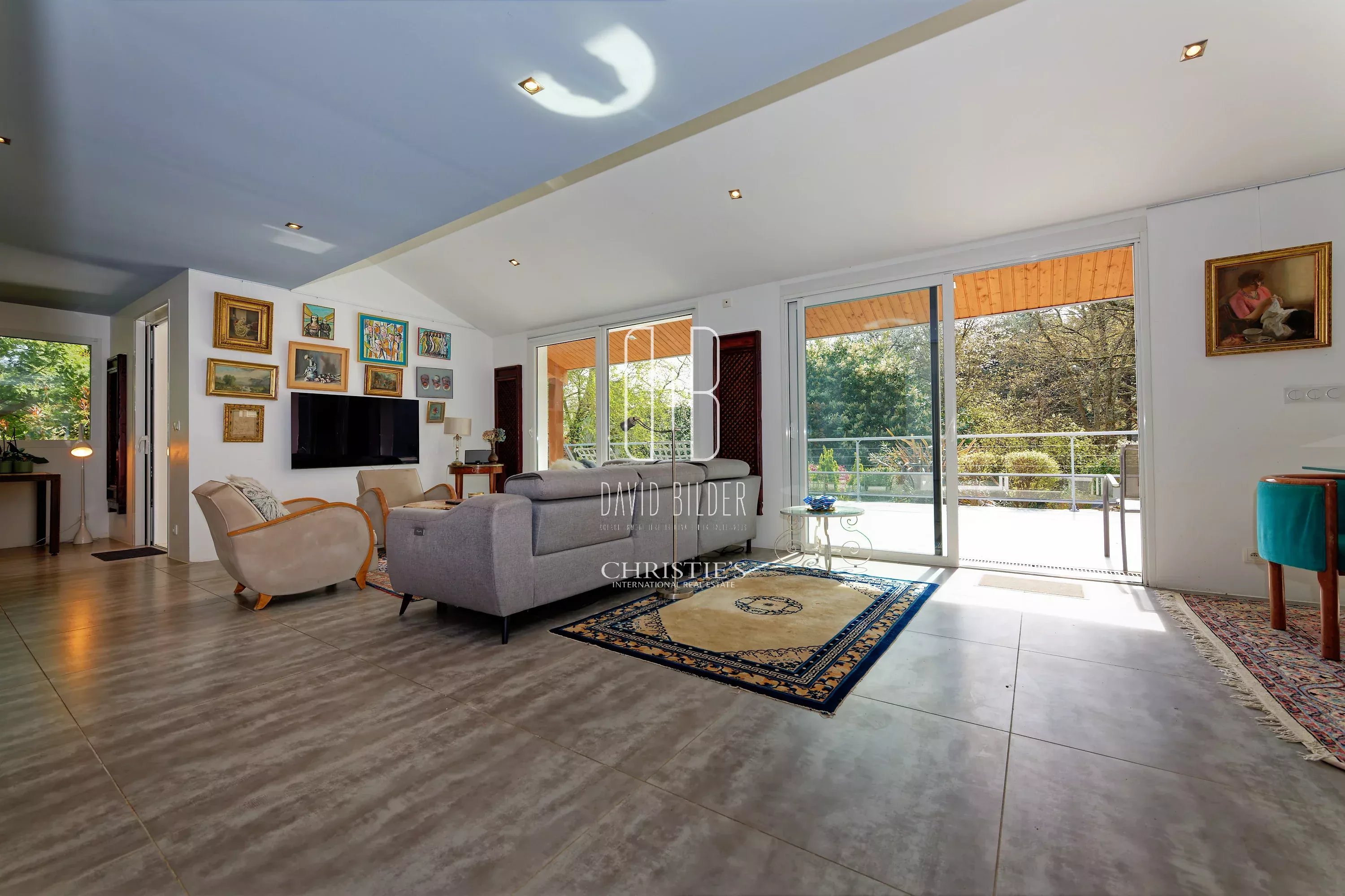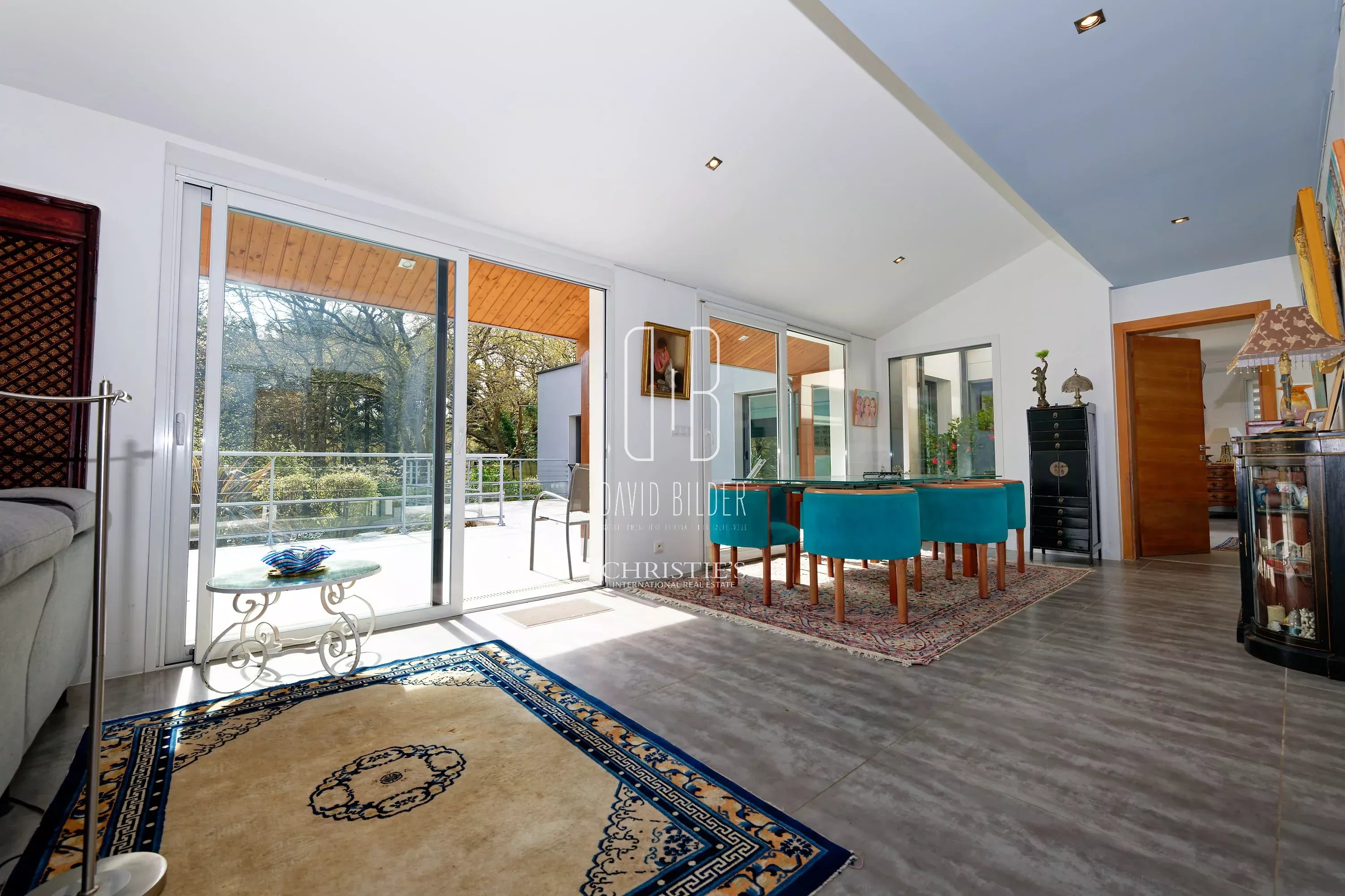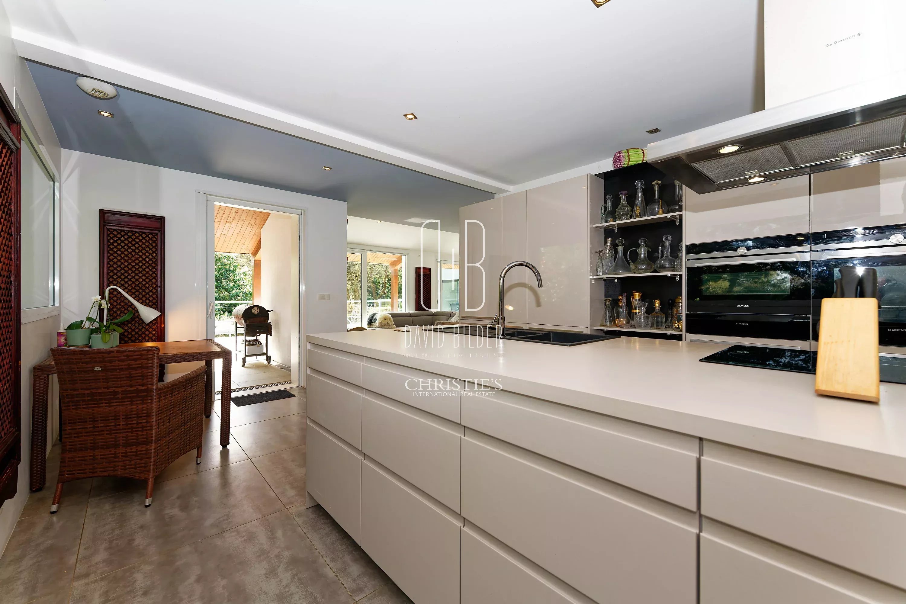 On the ground floor: A large living room of 60 m² open to the south-facing terrace, a very beautiful Leicht equipped kitchen on island.