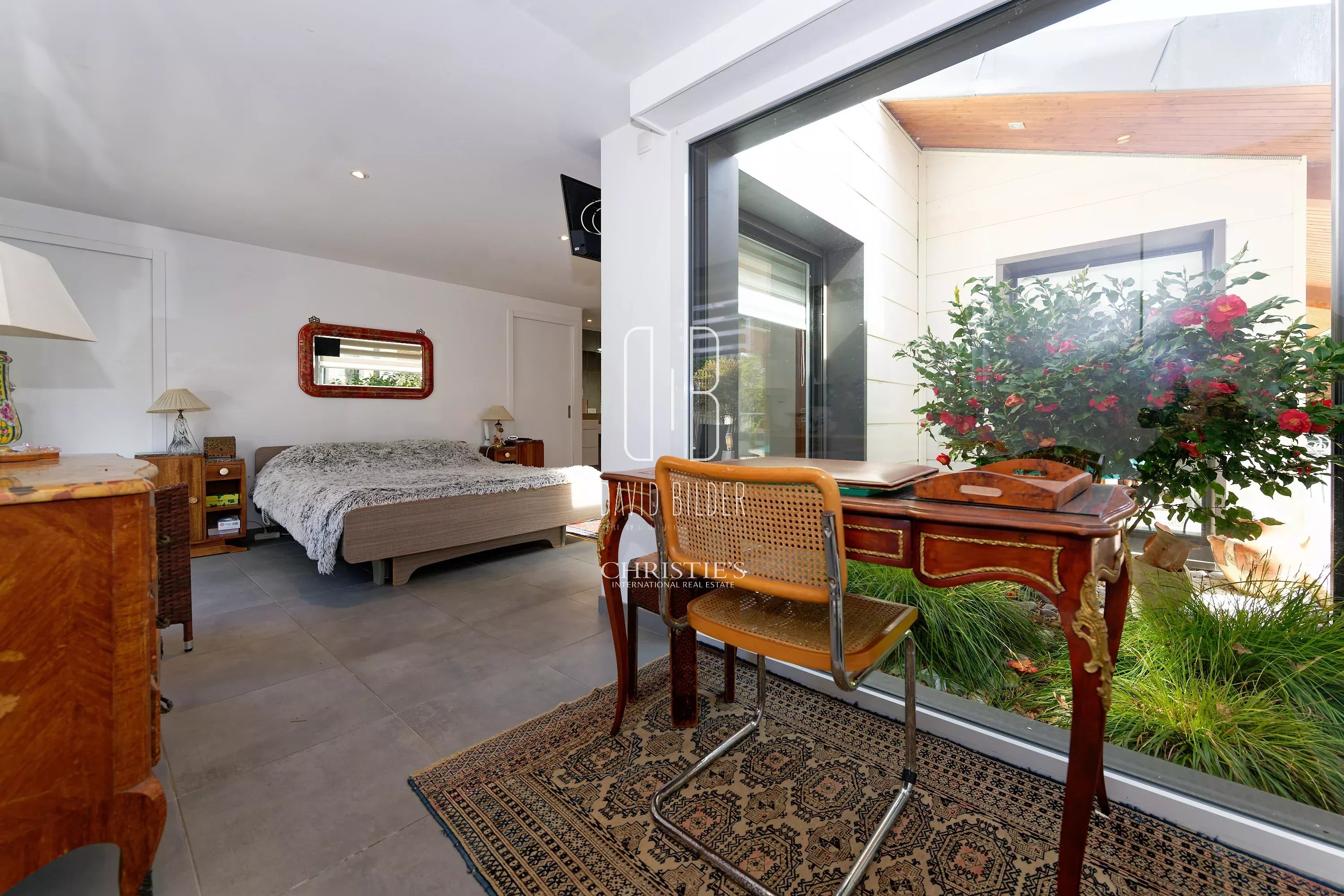 The 40 m² master suite with private bathroom, very bright, it overlooks the patio.
