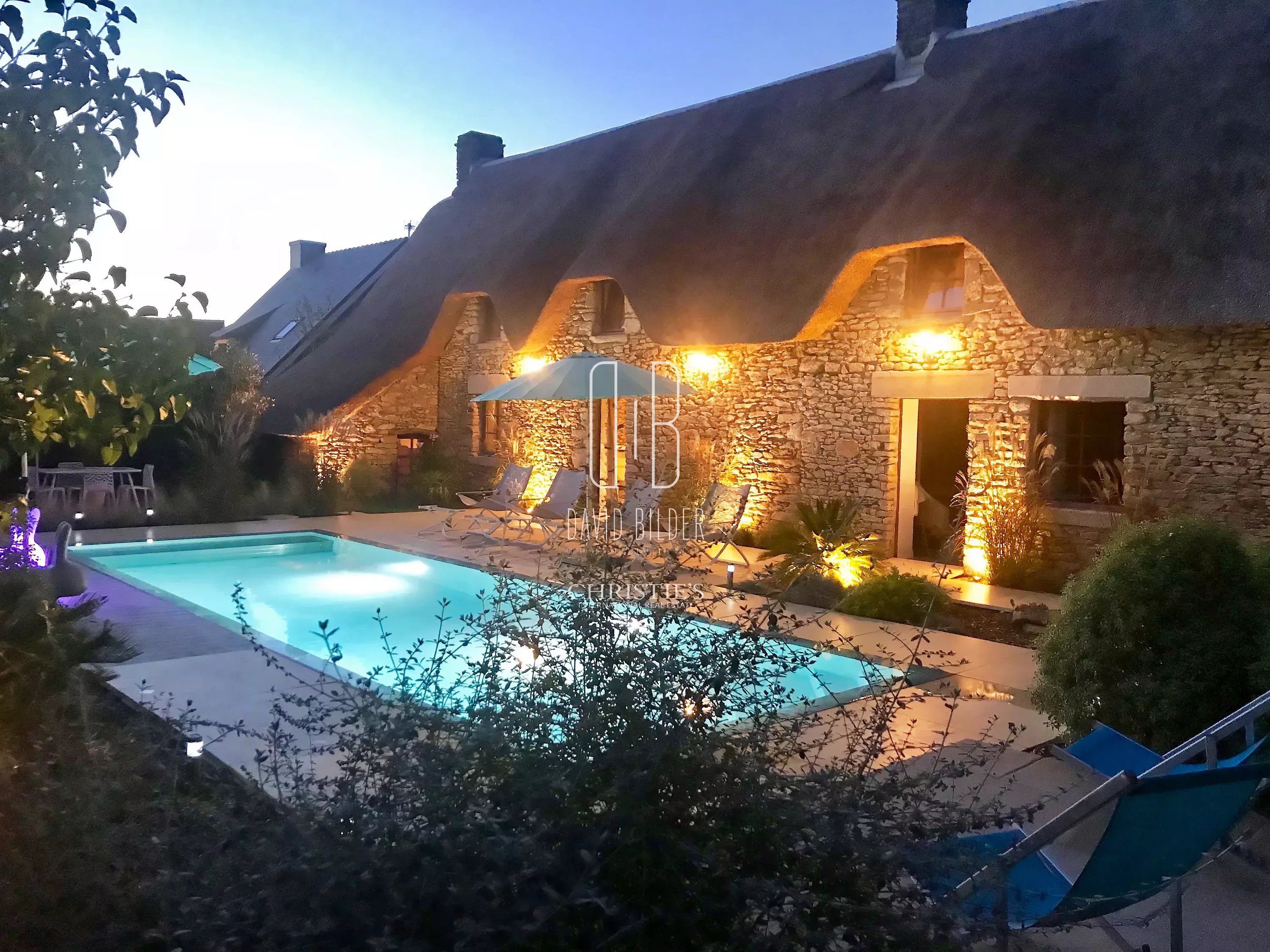 In the heart of the Brière Regional Natural Park, in an authentic hamlet a stone's throw from La Madeleine de Guérande, this remarkable 200 m² stone cottage combines the soul of a preserved Briéron architecture and the art of living of a large family home.