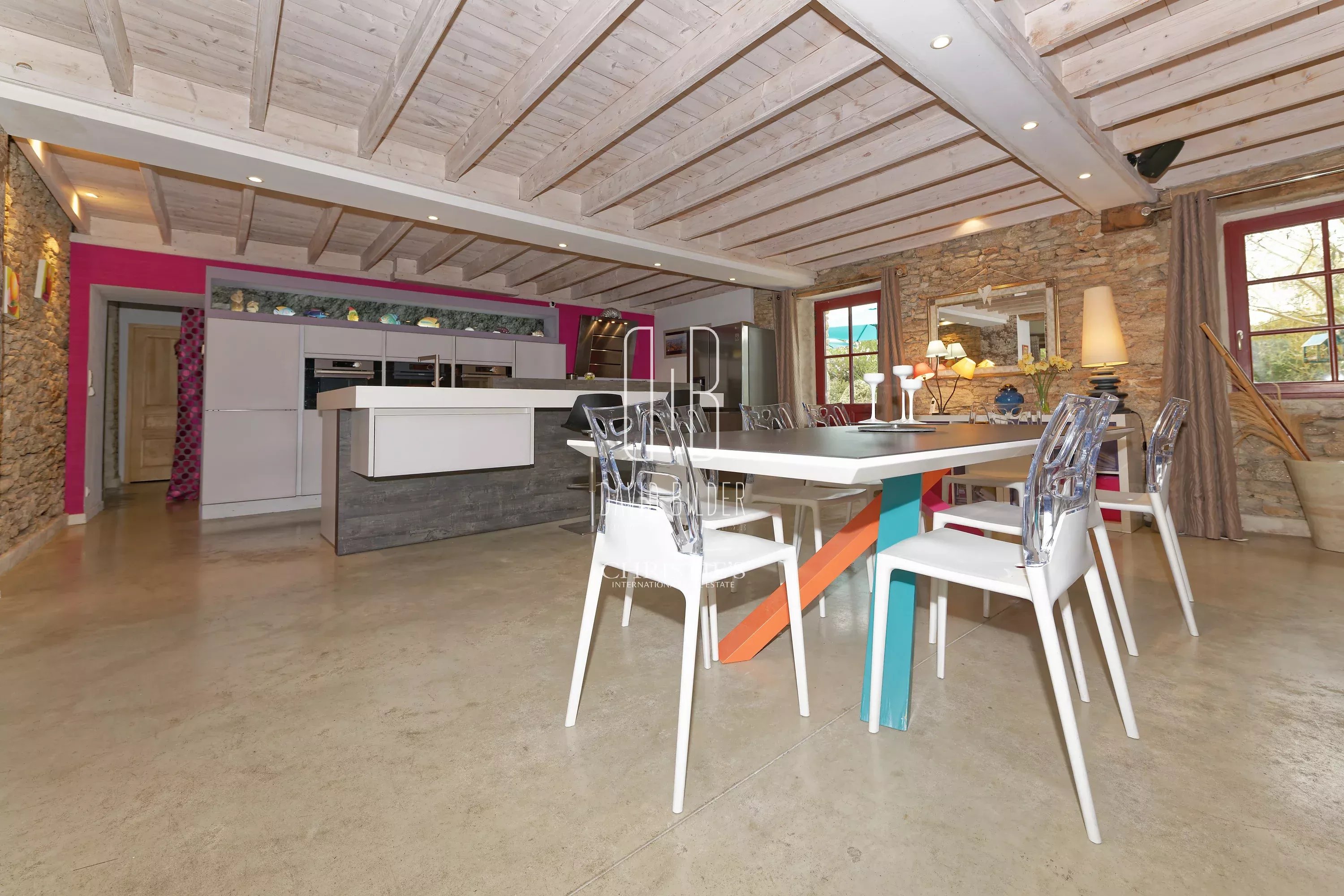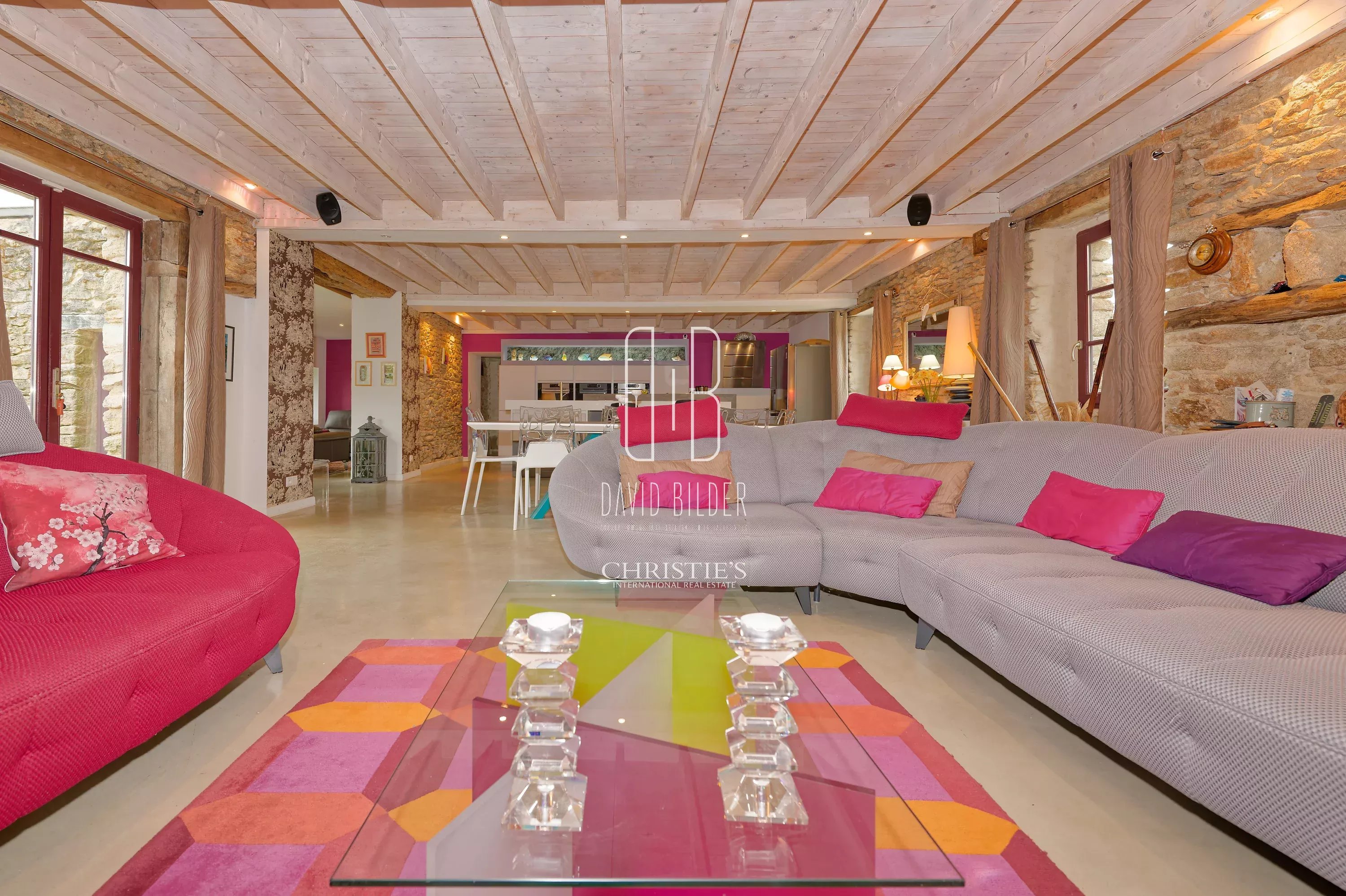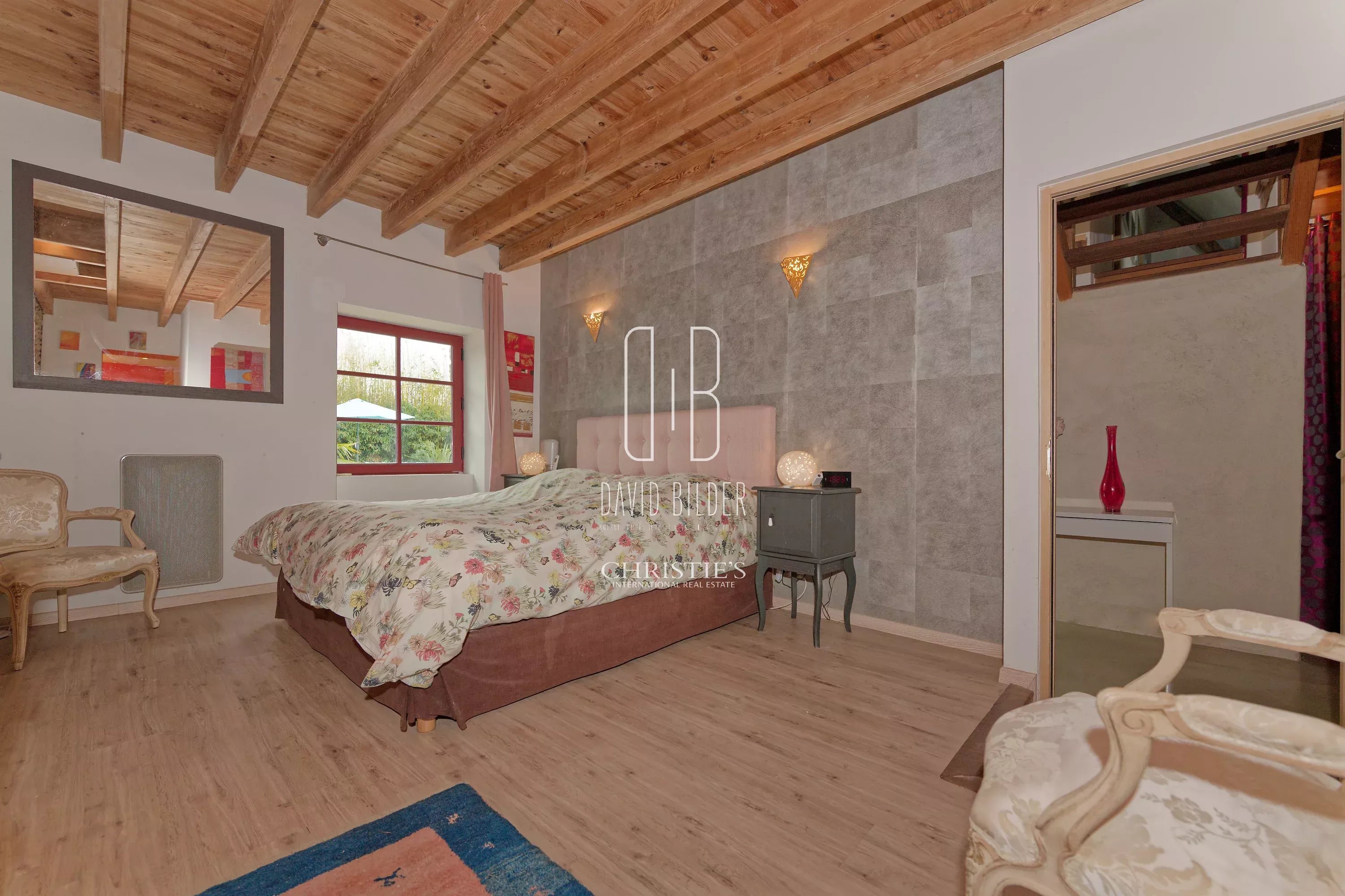 The ground floor is articulated around an exceptional living room - living room with fireplace, dining room and equipped kitchen open in perfect continuity - whose height under beams and exposed granite walls confer a generosity of volumes rarely accessible in this type of property. A second Piano living room, a laundry room, a toilet and a bedroom with bathroom complete this level.