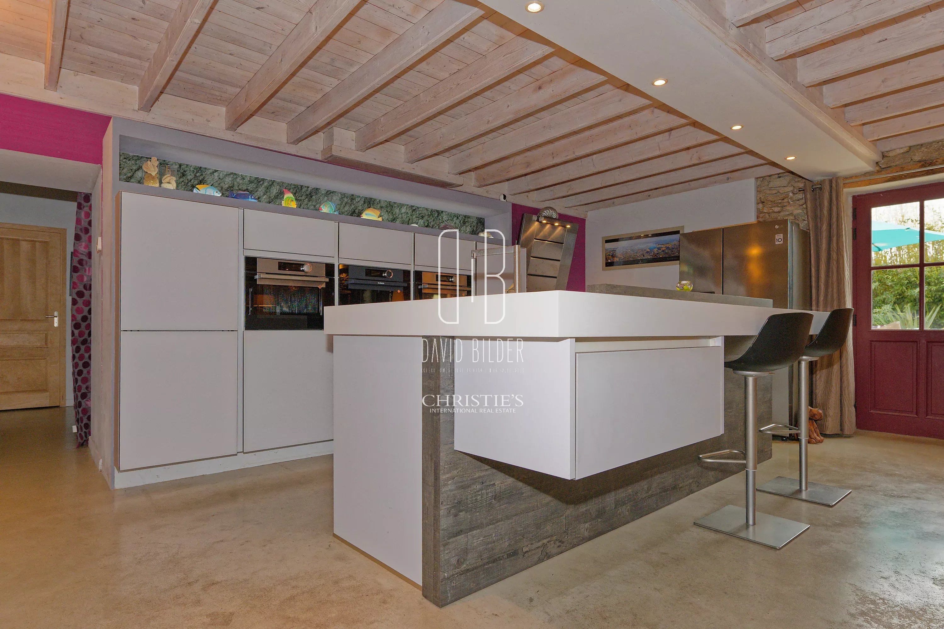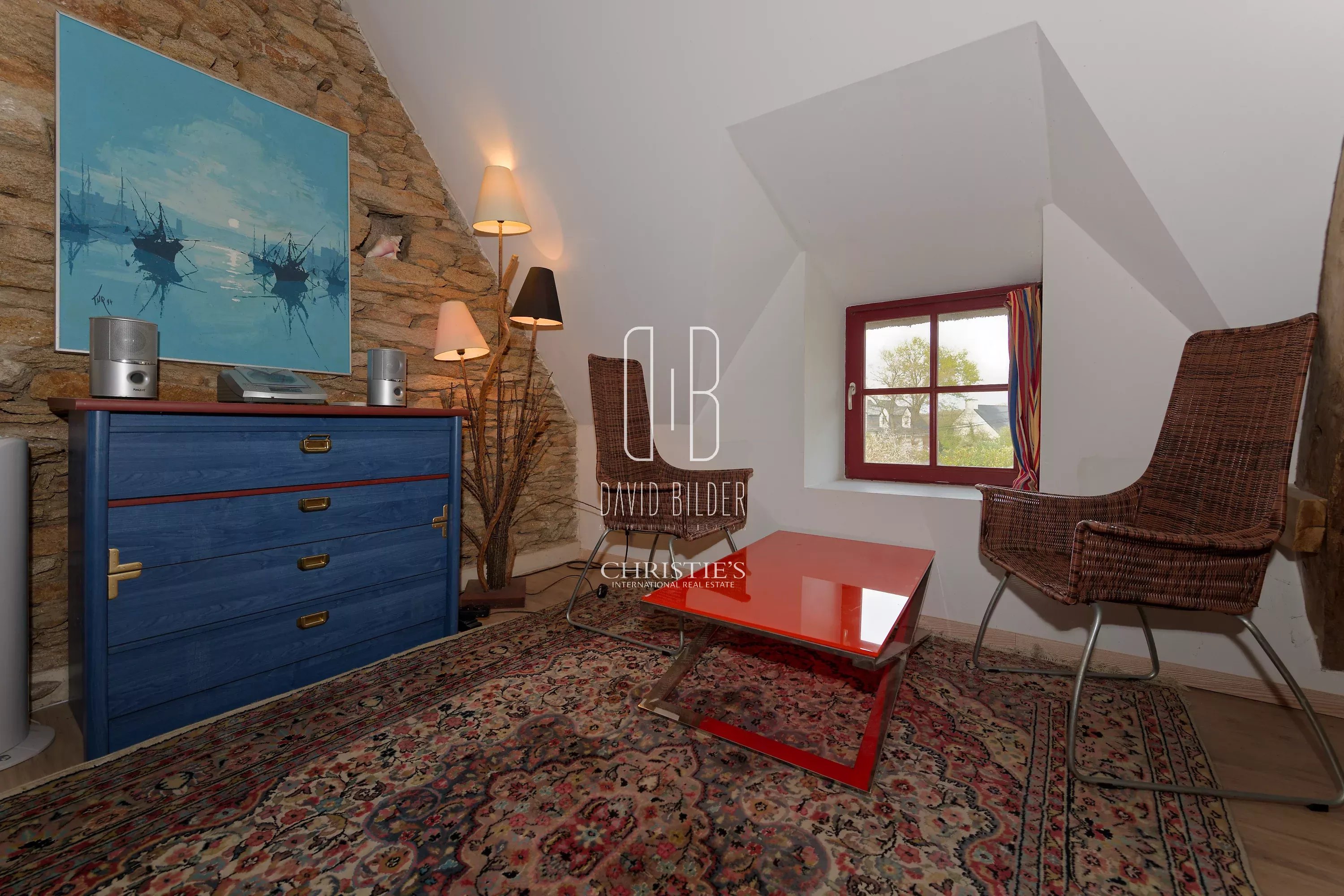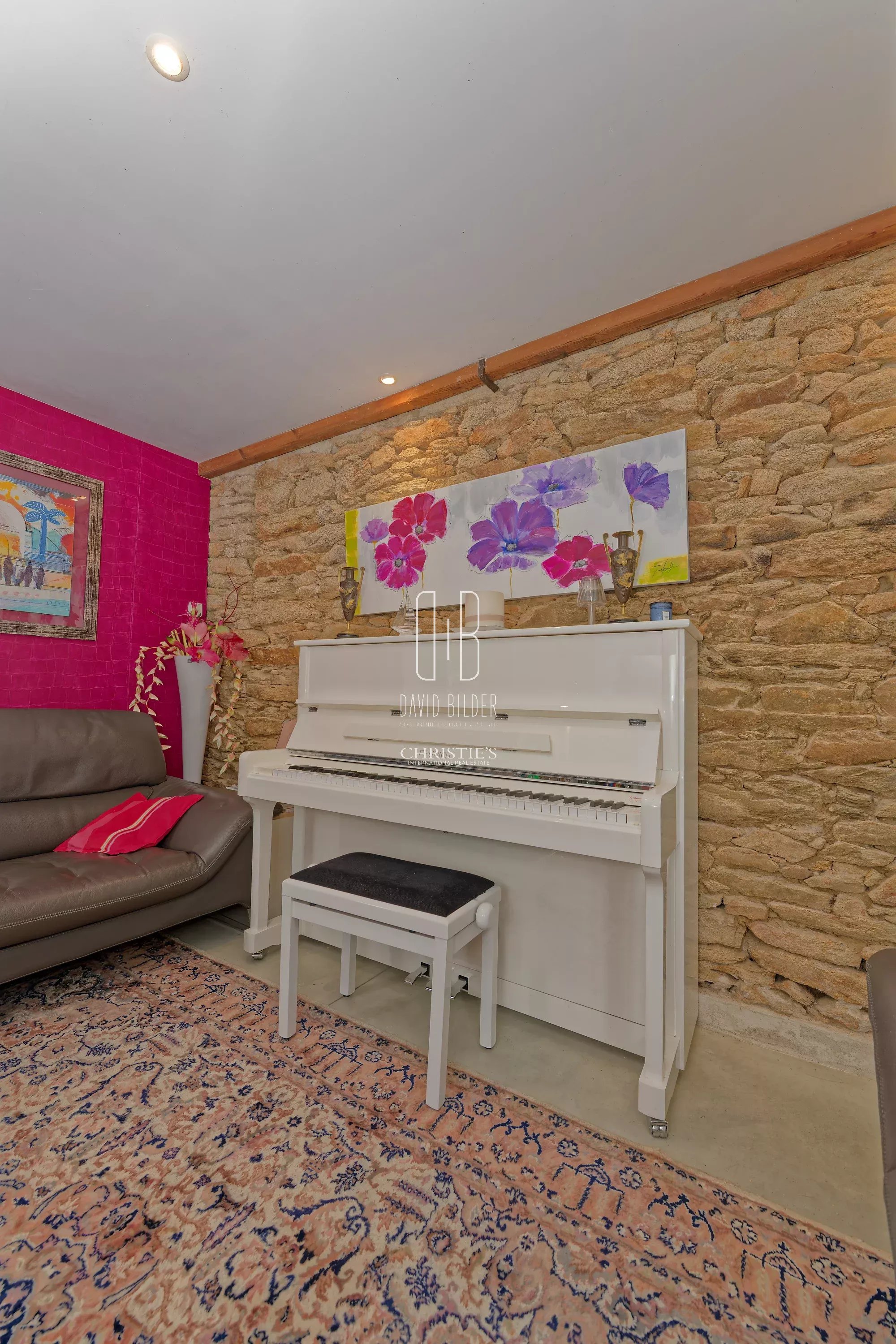 The ground floor is articulated around an exceptional living room - living room with fireplace, dining room and equipped kitchen open in perfect continuity - whose height under beams and exposed granite walls confer a generosity of volumes rarely accessible in this type of property. A second Piano living room, a laundry room, a toilet and a bedroom with bathroom complete this level.