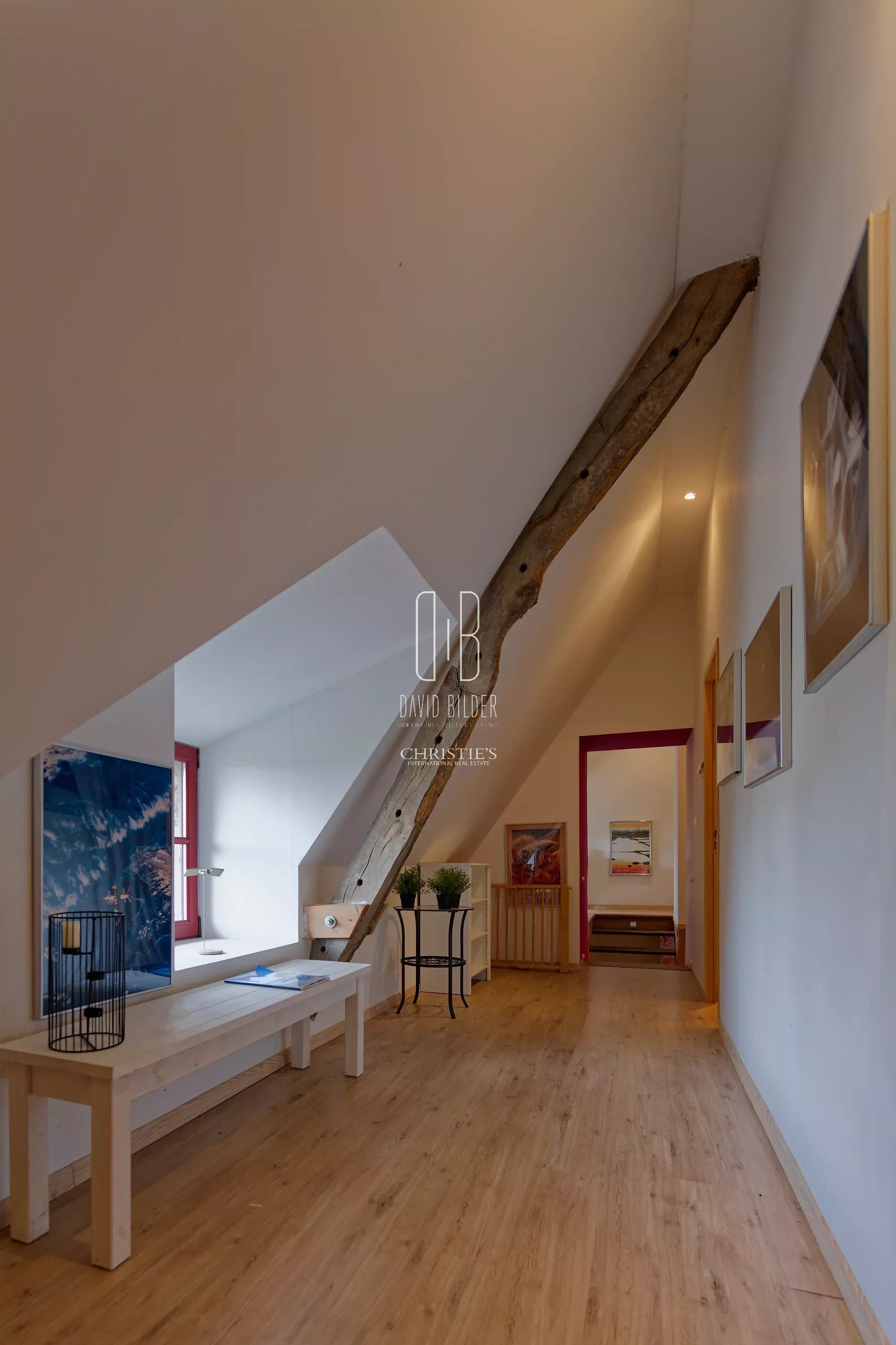 Upstairs, a T-distribution serves on one side three bedrooms, a bathroom and a toilet; on the other, an office space and a bedroom with bathroom. Five rooms in total, to welcome family and friends in generous comfort.