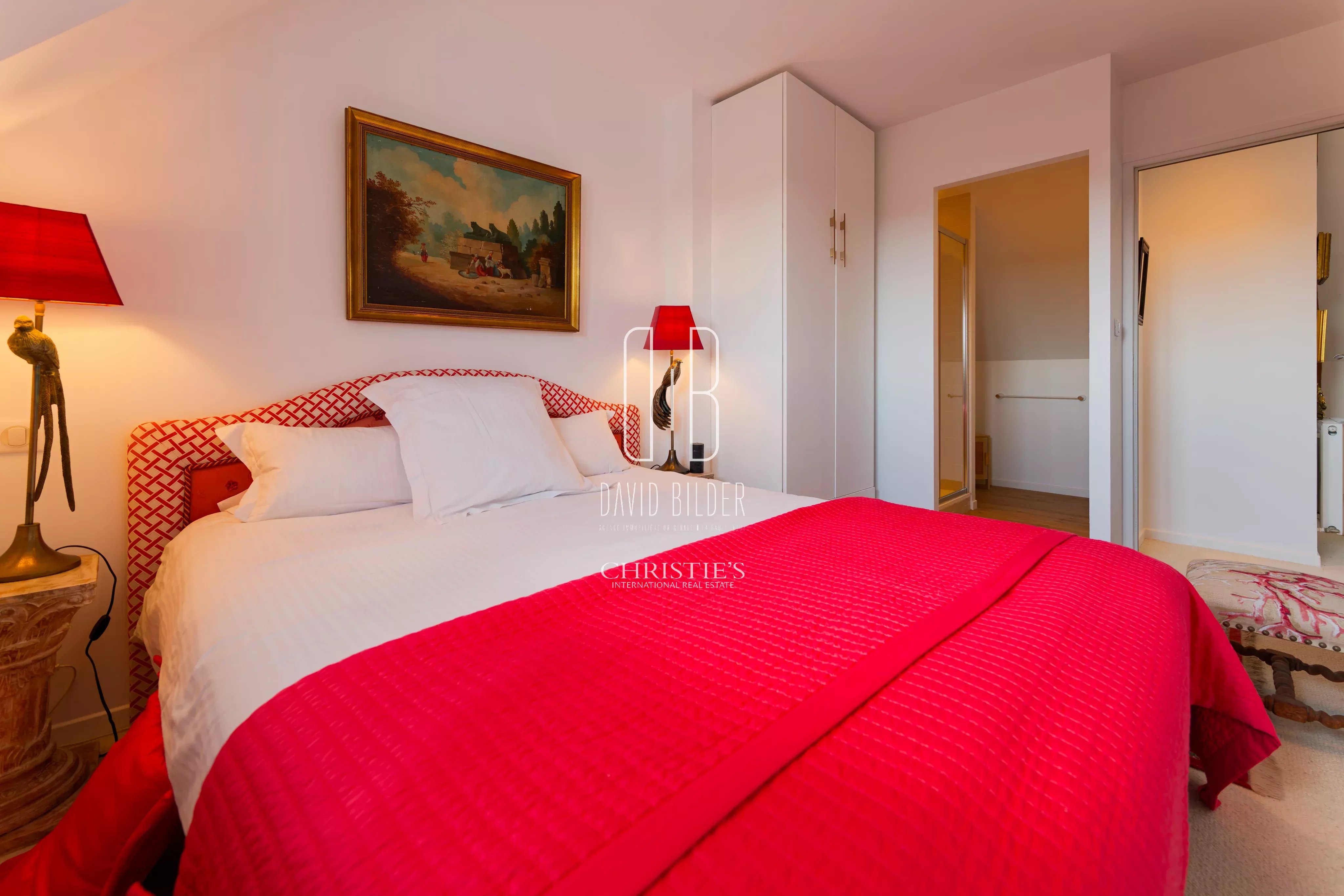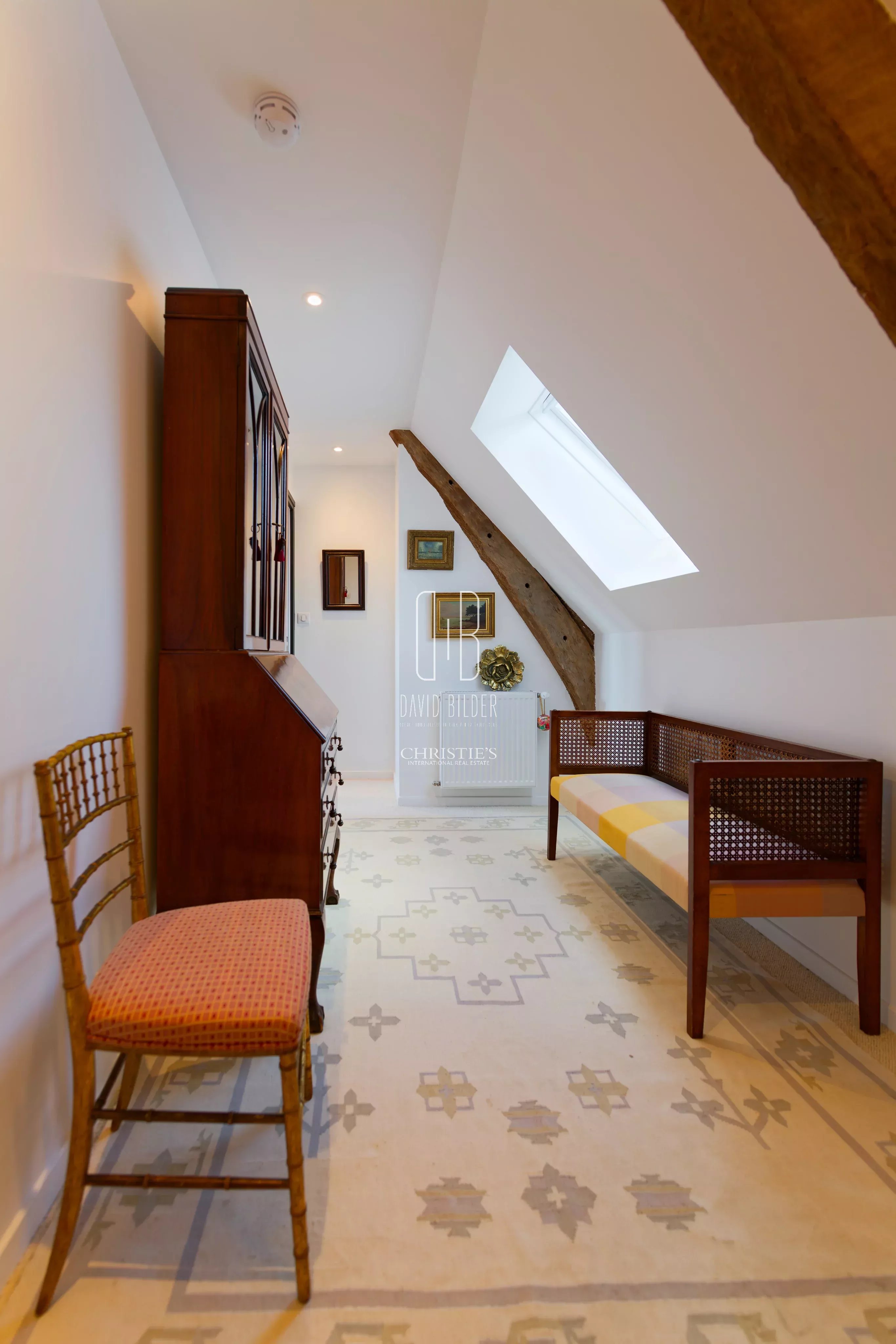 La maison offre deux espaces salons, pensés pour chaque saison, un salon cheminée cosy et un salon d’été baigné de lumière, ouvert sur le jardin exposé plein sud. Une salle à manger vue sur le jardin et une cuisine équipée et aménagée.